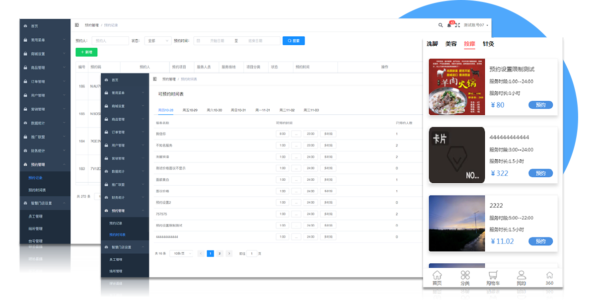 用户可选择预约时间合理安排到店服务,商家可检测解决服务资源冲突问题