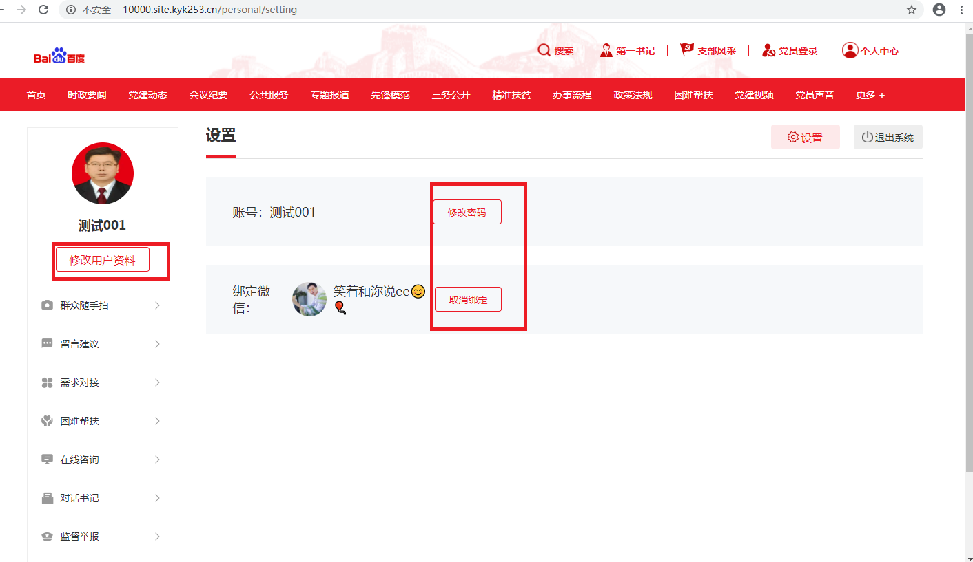 第一步:个人中心右上角,点【设置】按钮,可以修改密码和退出系统。如下图所示: