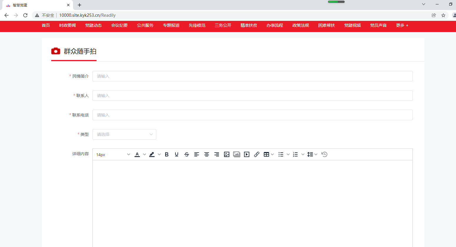 例如:群众随手拍。如下图所示,其它类别同理。如下图所示: