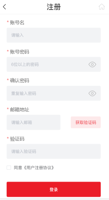 注册并登录账号。(同PC端注册一致)