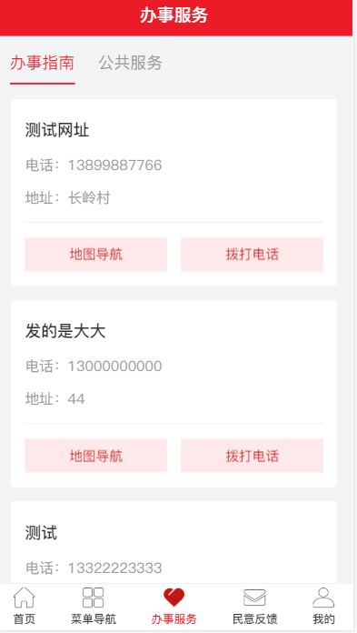 第二个:可以查看办事处的电话、地址、地图定位、官网等信息,方便群众服务。如下图所示: