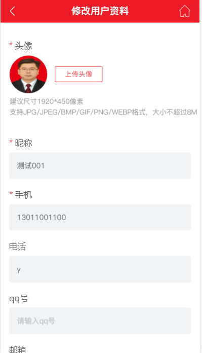第二步:个人中心右上角“修改用户资料”处,可以修改用户的基本资料。如下图所示:
