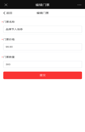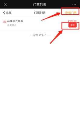 门票列表:显示该活动的所有门票信息,点击需要修改的门票可以编辑门票的名称、价格、数量、或者删除门票。以及根据活动需要增加新的门票。如下图所示:
