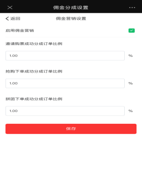 佣金营销设置,需要先启用佣金营销,分享规则按照比例设置,只有通过扫描海报二维码或者分享链接进入,并且在这期间下单才算邀请成功,退出重新进入首页再下单则不算邀请关系。只有以下三个规则才可获得对应的佣金。如下图所示: