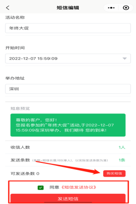 群发短信功能,是基于购买过门票的用户信息,选择任意门票类型下一步发送短信通知购票用户,提醒用户及时参与活动(该主办方账户需要有短信包数量,如没有则可先购买)如下图所示: