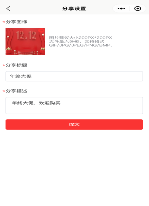 分享信息设置可以设置分享链接时,分享图片,标题,描述内容。如下图所示: