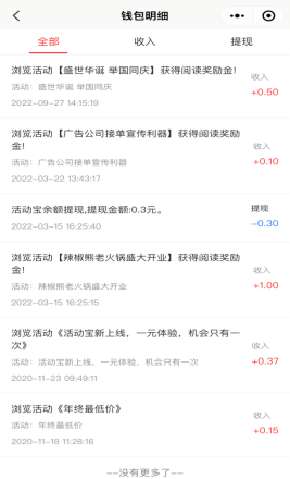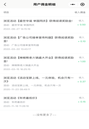 用户参与的所有活动中总的收入佣金明细。如下图所示:
