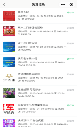 用户账户下所有浏览过的活动记录。如下图所示: