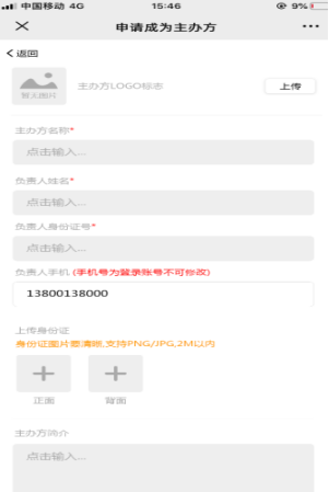 参与者填写申请主办方的信息,主办方在PC端后台审核参与者的申请。如下图所示: