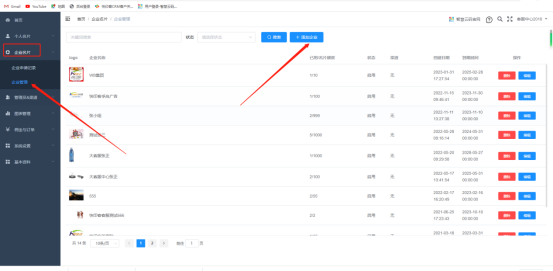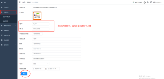 2.1、点击企业管理-添加企业,如下图所示:带*号的必填,最后点击确认