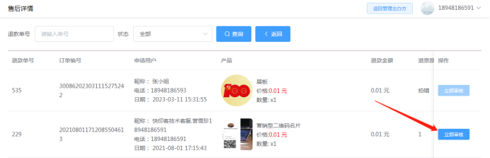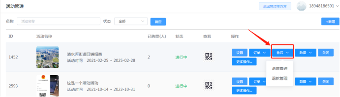 售后:可查看该活动改成的售后订单,包括退票和退款订单。可查看申请退款的用户、产品、原因和是否进行审核退款。如下图所示: