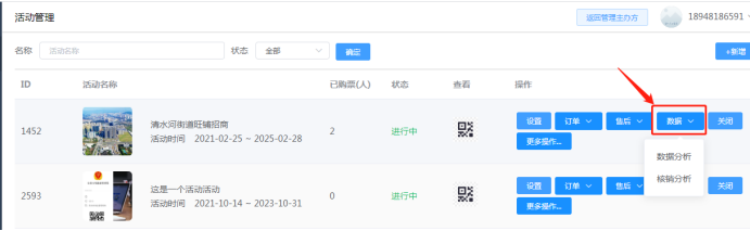 数据:即该活动下产生的活动数据,如浏览数据,核销数据。如下图所示:
