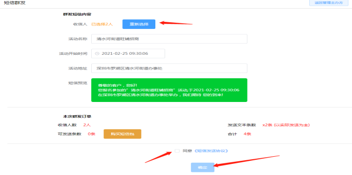 (用户购买门票/爆款/拼团产品,主办方会收到短信通知,短信由总部免费提供发送,不需要另外充值)