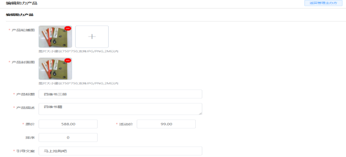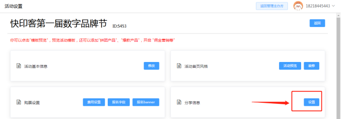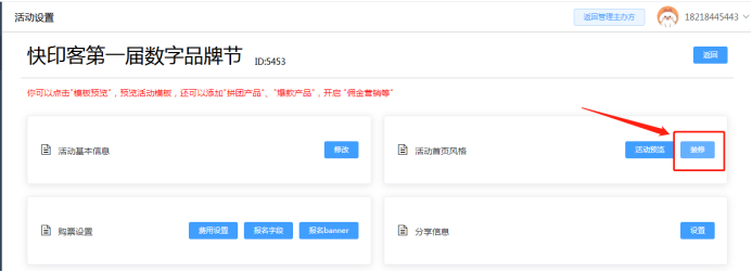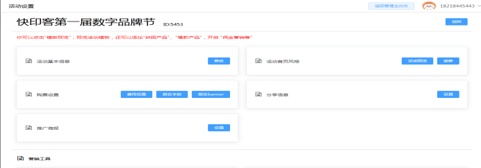 2.6 活动管理:可查看活动宣传二维码、和进入设置该活动基本内容。最终活动设置好确定好后再点击发布!如下所示: