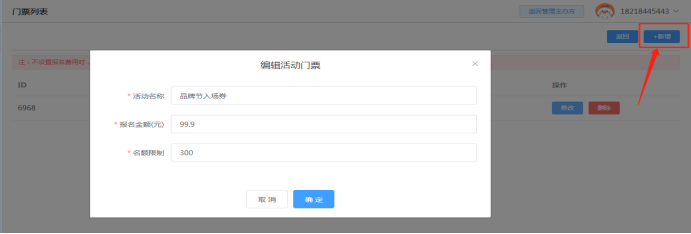 可建活动数指主办方下面能创建活动数量,同时可进行活动数