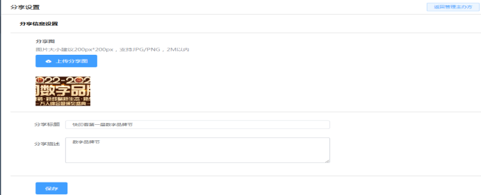 2.64 分享信息:可以上传活动缩略图、设置分享标题和分享描述。当生成链接进行分享时,则会显示该分享内容。如下所示: