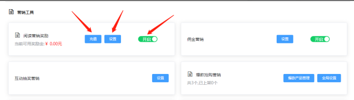 2.66 阅读营销奖励金:可根据活动需要进行充值和开启设置(主办方充值),充值和开启后,用户登录浏览活动即可获取对应金额的阅读奖励金