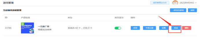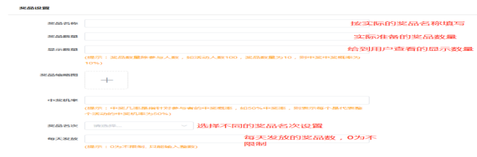 游戏提交保存后,开始设置奖项名称和奖品数量,每个奖项添加的设置流程是一样的。如下所示: