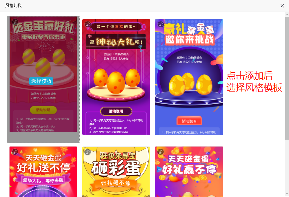 2、点击添加后,可根据自身喜好自行选择风格模板,如下图