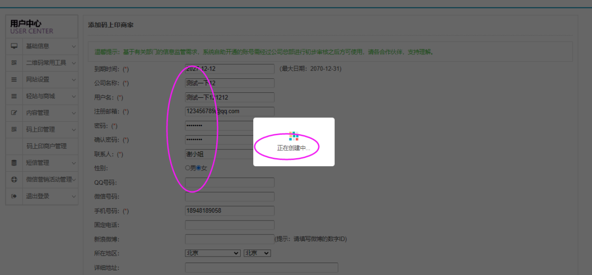 温馨提示1:基于有关部门的信息监管需求,系统自助开通的账号需经过公司总部进行初步审核之后方可使用,请各合作伙伴,支持理解。