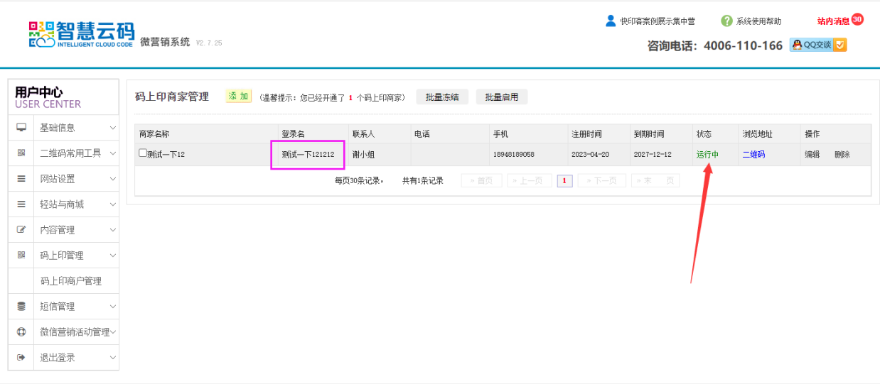 【注:码上印管理为额外付费开通功能,若您合作方案里未包括在内,则需要单独开通使用,请联系快印客客服中心。客服热线:4006110166 客服QQ:4006110166】