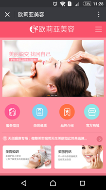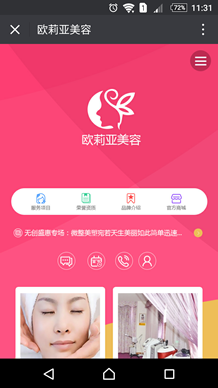 人们的生活水平提高越来越多的人注重对自己的保养那么如何将美容行业在微信公众号使用呢?如何把美容行业结合“互联网+”呢?微动力美容行业解决方案为你专业打造指尖上的美丽。基于微信公众号开发的功能有:资质展示、服务项目介绍、门店查询、作品案例展示、顾客咨询、在线预约,周边产品在线销售,全方位服务于客户的美丽梦想。
