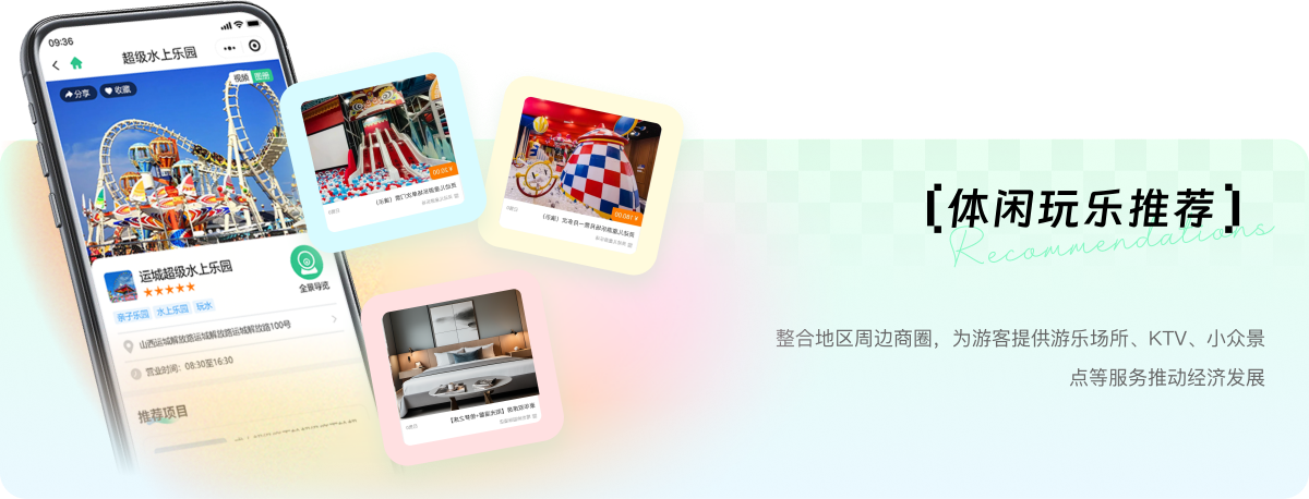 整合地区周边商圈,为游客提供游乐场所、KTV、小众景点等服务推动经济发展