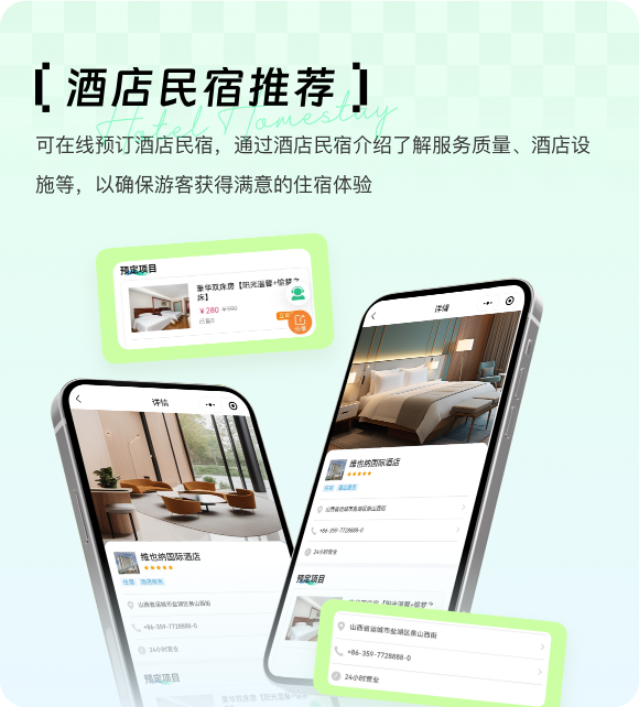 可在线预订酒店民宿,通过酒店民宿介绍了解服务质量、酒店设施等,以确保游客获得满意的住宿体验