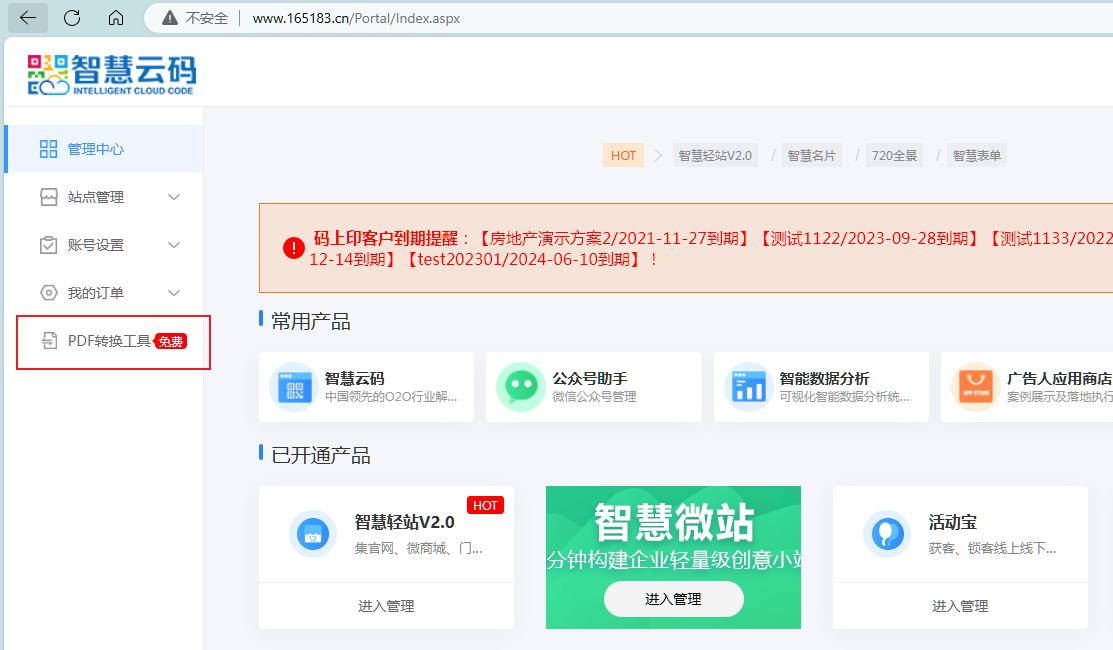 感谢您一直以来对智慧云码的支持及信任。智慧云码系统已于2024年7月4日进行了系统更新升级,本次更新主要为 PDF转换工具,详情如下: