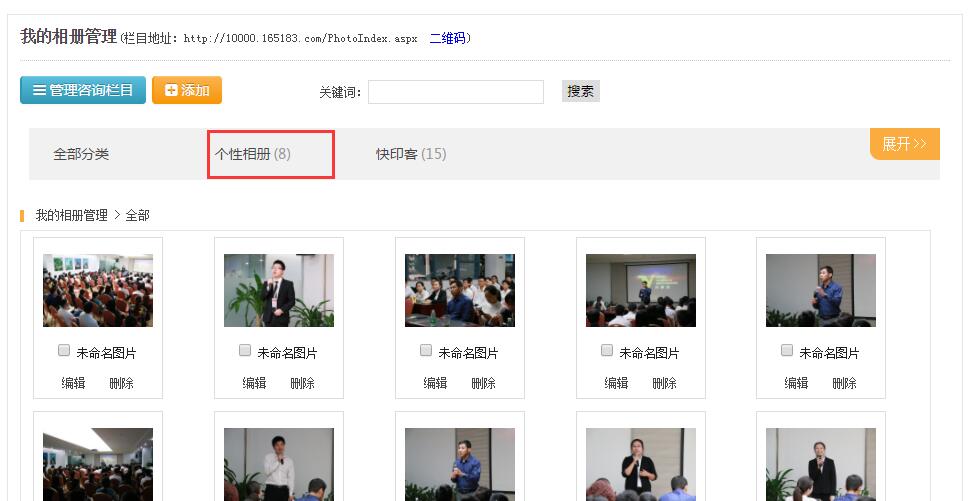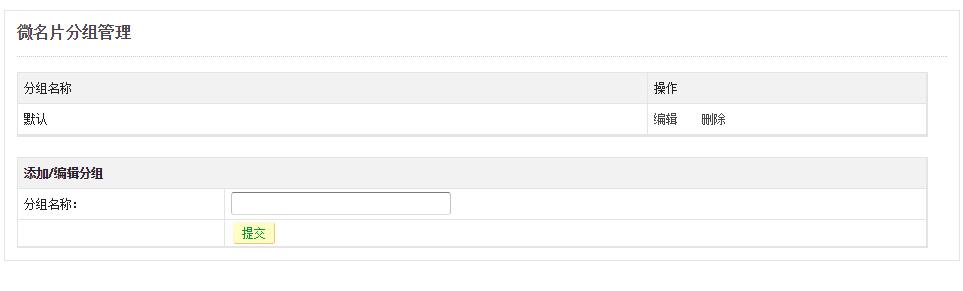 点击管理名片分组,可以对分组进行添加、编辑、删除