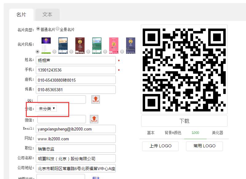 在添加/编辑名片信息时,选择对应的分组,即可将名片划下该分组下