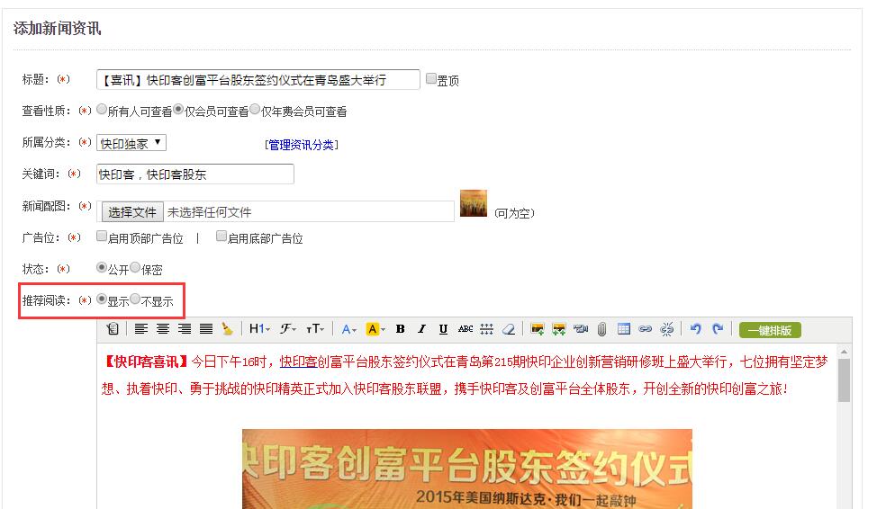 4、新闻、文本,新增是否显示推荐阅读相关资讯功能。对于特殊类型的资讯及文本,可选择关闭推荐功能