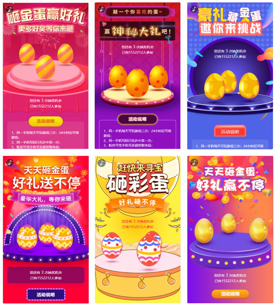 3、互动游戏 砸金蛋 全新升级,新升级后砸金蛋含6种模式。