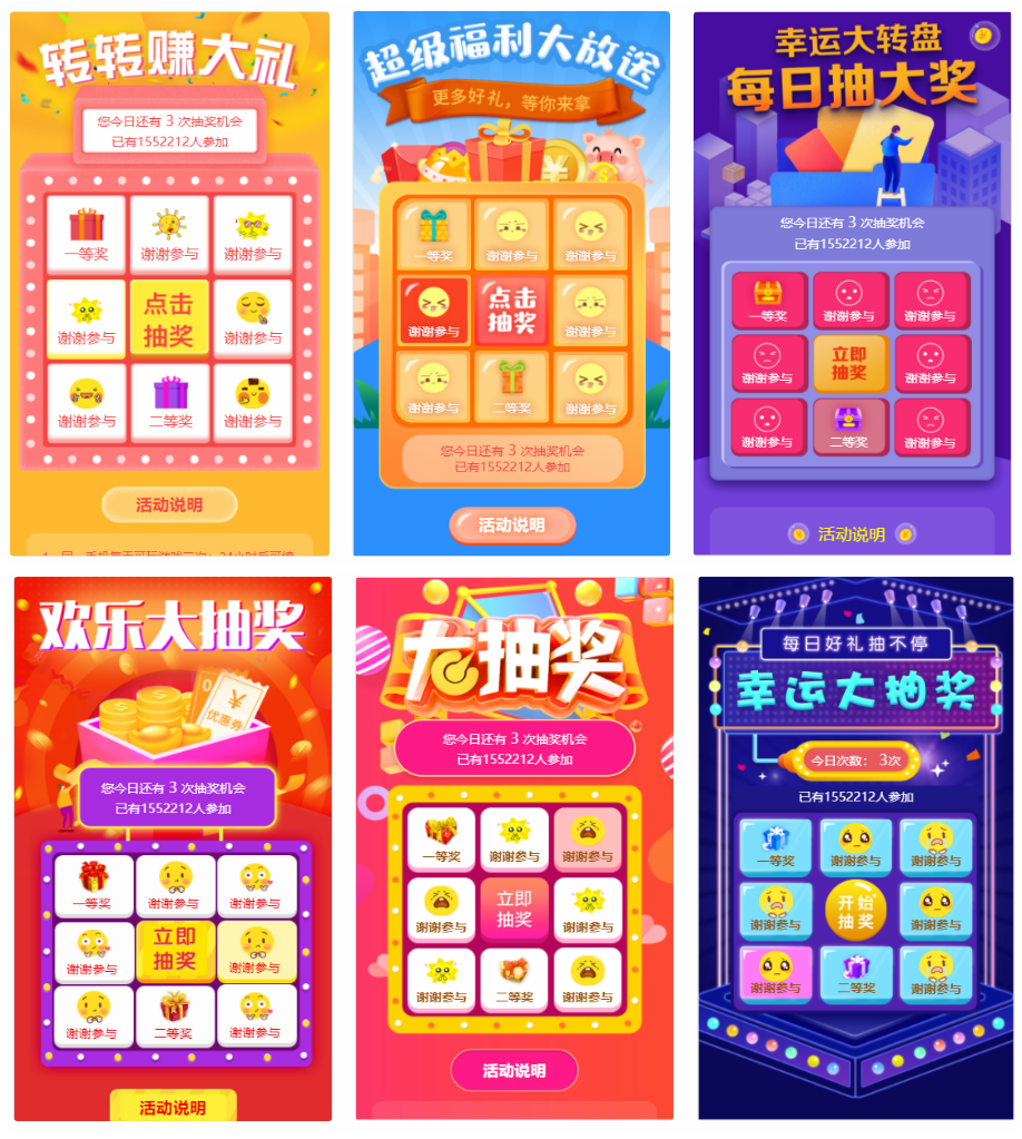1、互动游戏 超级大转盘 全新升级,新升级后大转盘含6种模式。