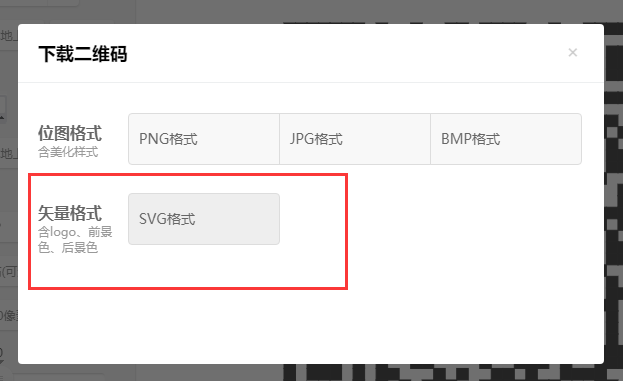 一、二维码生成支持多种格式文档。新增png、jpg、bmg图片格式,以及svg矢量图格式