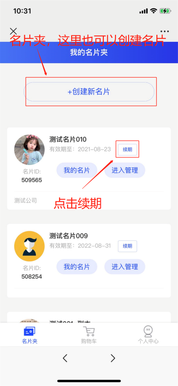 第六步:体验7天后,名片到期,要续期则进入名片夹,点击【续期】
