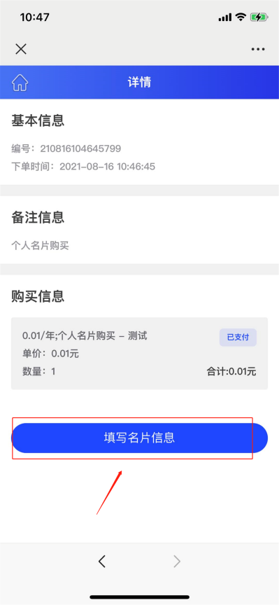 第五步:点击【填写名片信息】