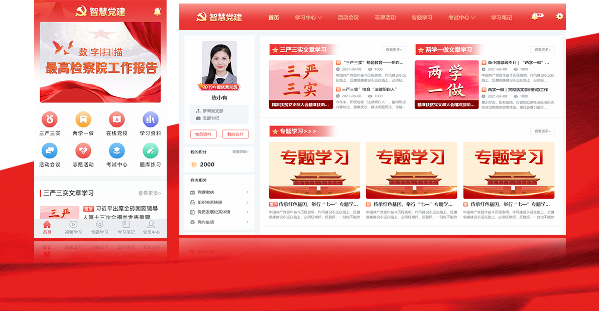 党员中心:通过党员中心党员可以随时随地学习,加强党员意识,实现党员党务交接处理、线上办公,推进党建工作的发展