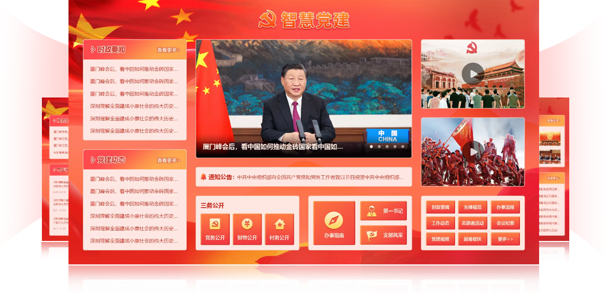 党建宣传门户:以“围绕党建,结合政务,服务群众”为主旨,打造一体化智慧党建信息平台
