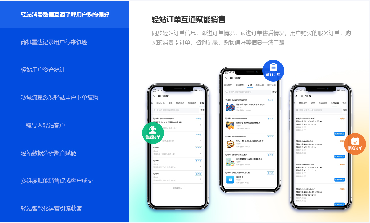 智慧客户通系统特色在于SCRM系统与智慧轻站数据打通融合,打造私域营销闭环,赋能智慧轻站营销,提升转化, 促成产品购买成交。